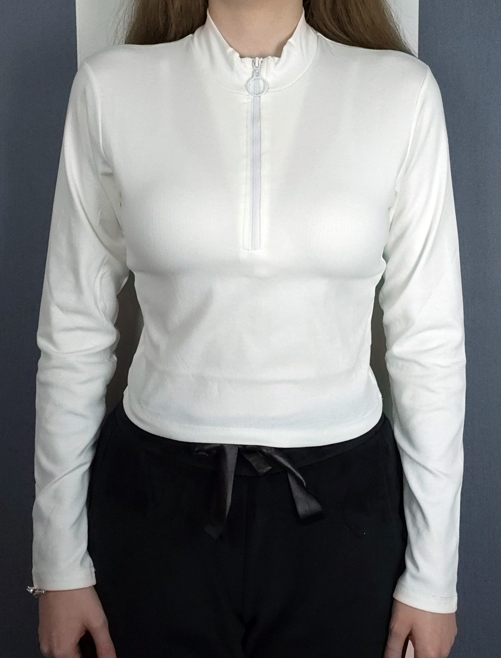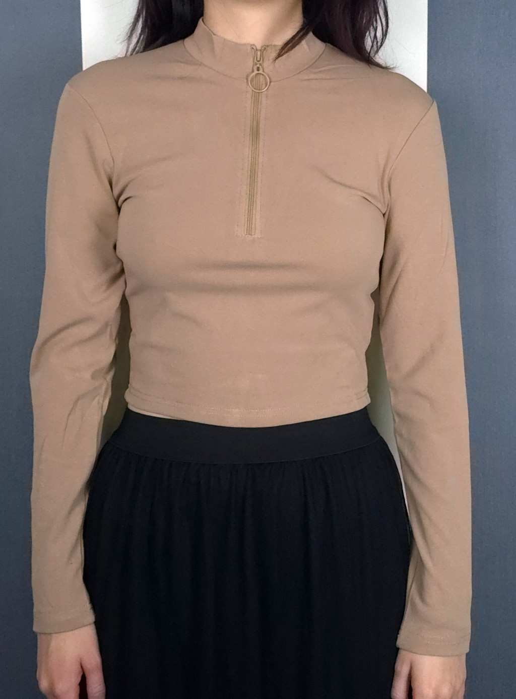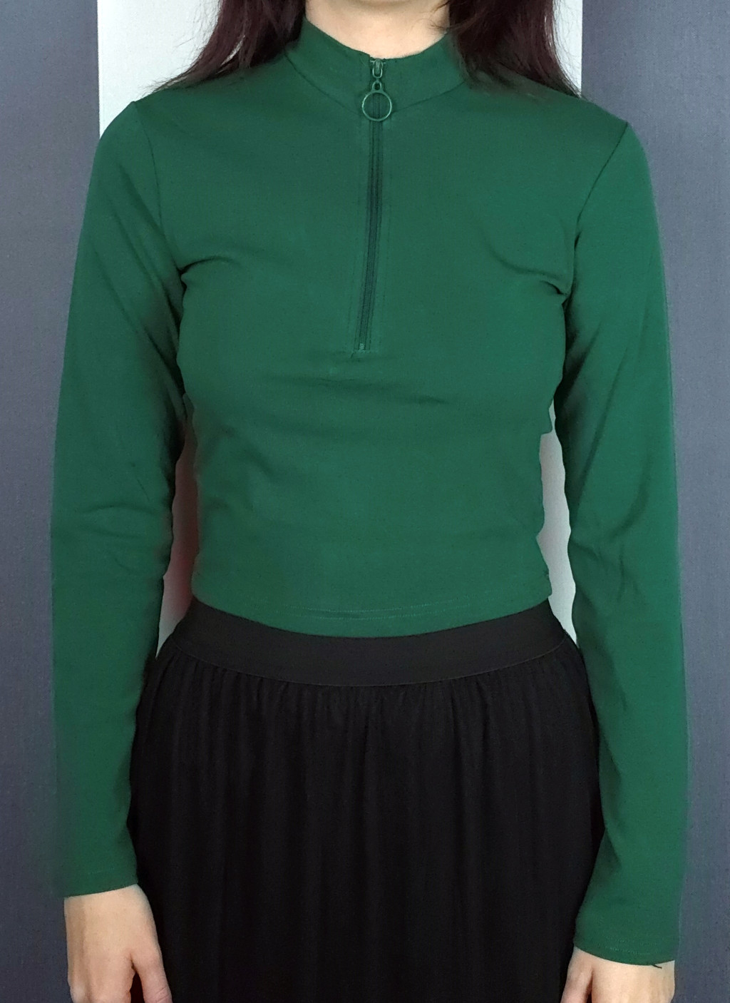 Cipzáros nyakú crop top (fehér, zöld, drapp)