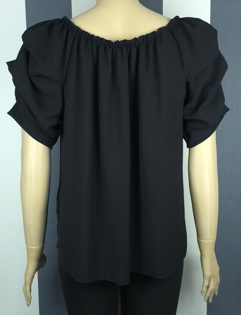 Csónak nyakú, buggyos, rövid ujjú felső