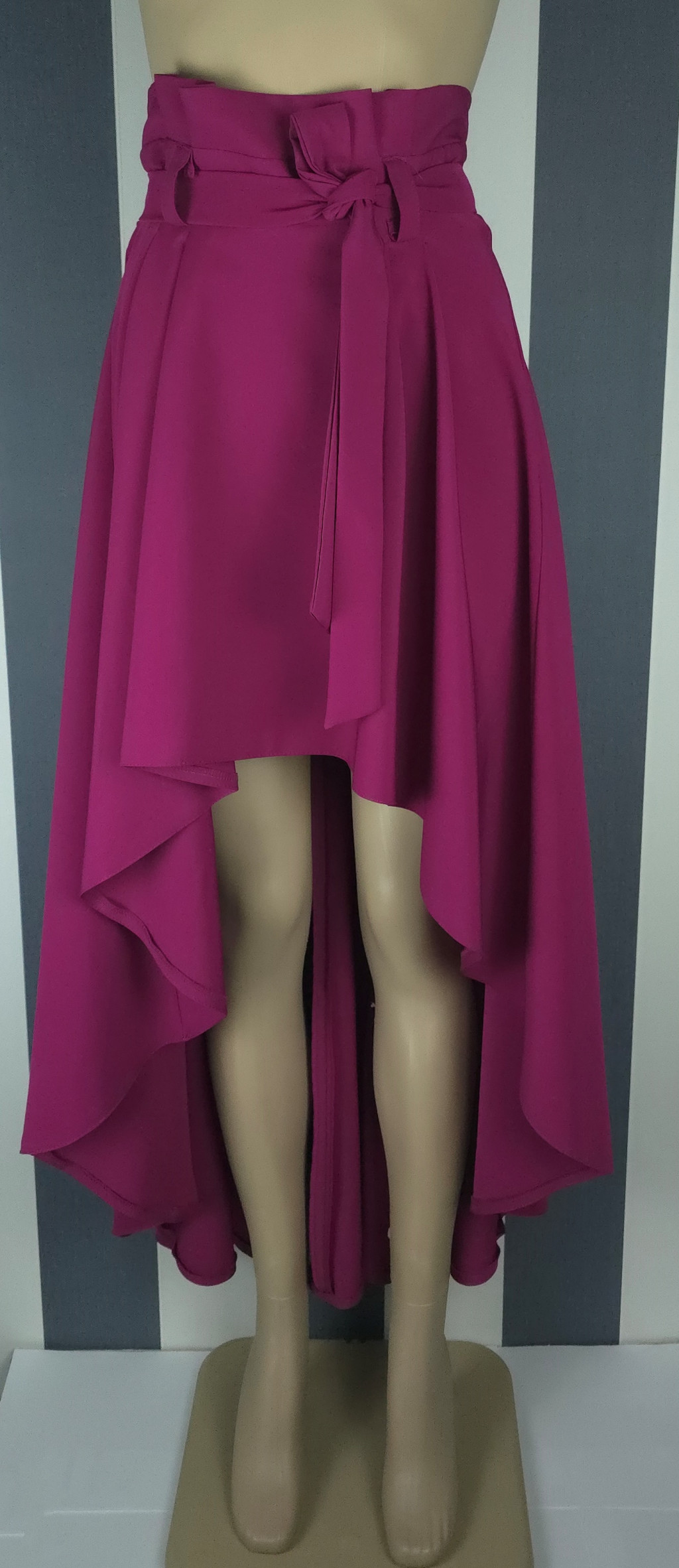 Mályva színű elől rövid, hátul hosszú szoknya (S, M, 2XL méret)