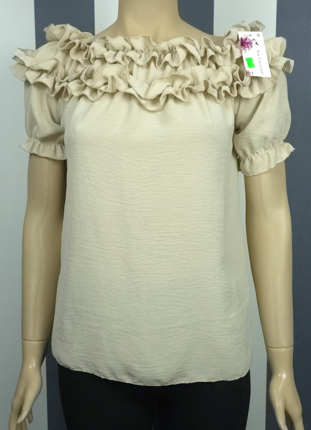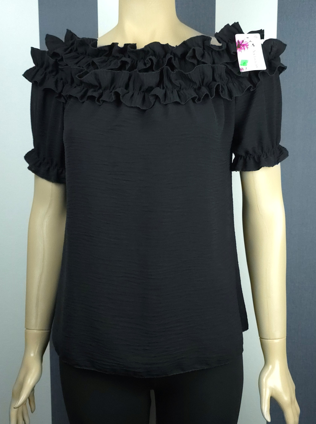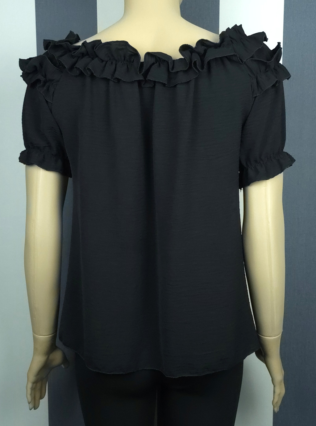 Fodros nyakú rövid ujjú felső (fekete, bézs)