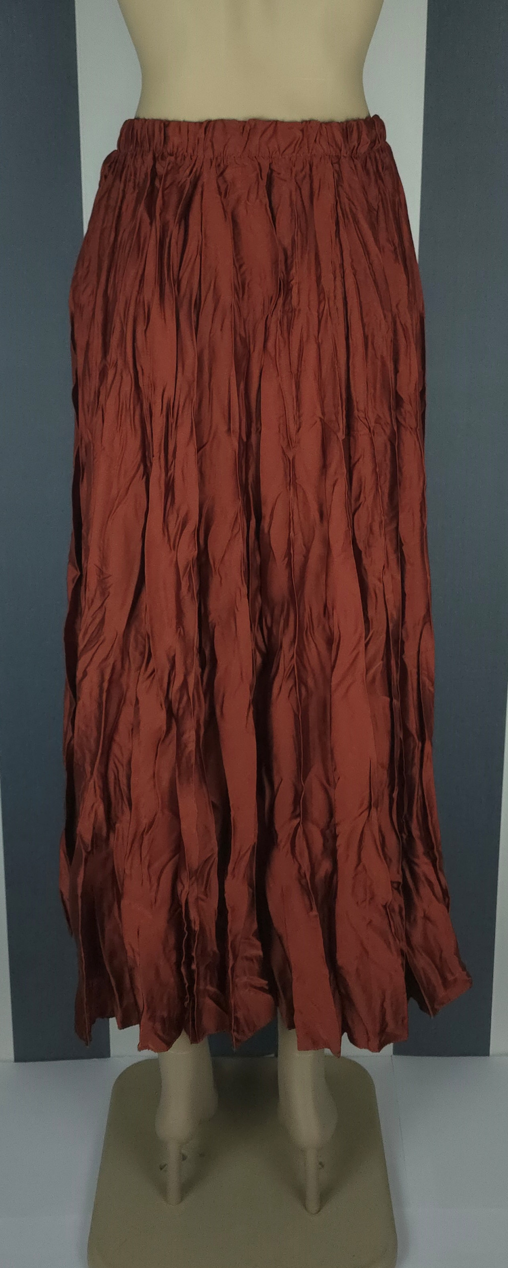 Gyűrt selyem szoknya (fekete, terrakotta)