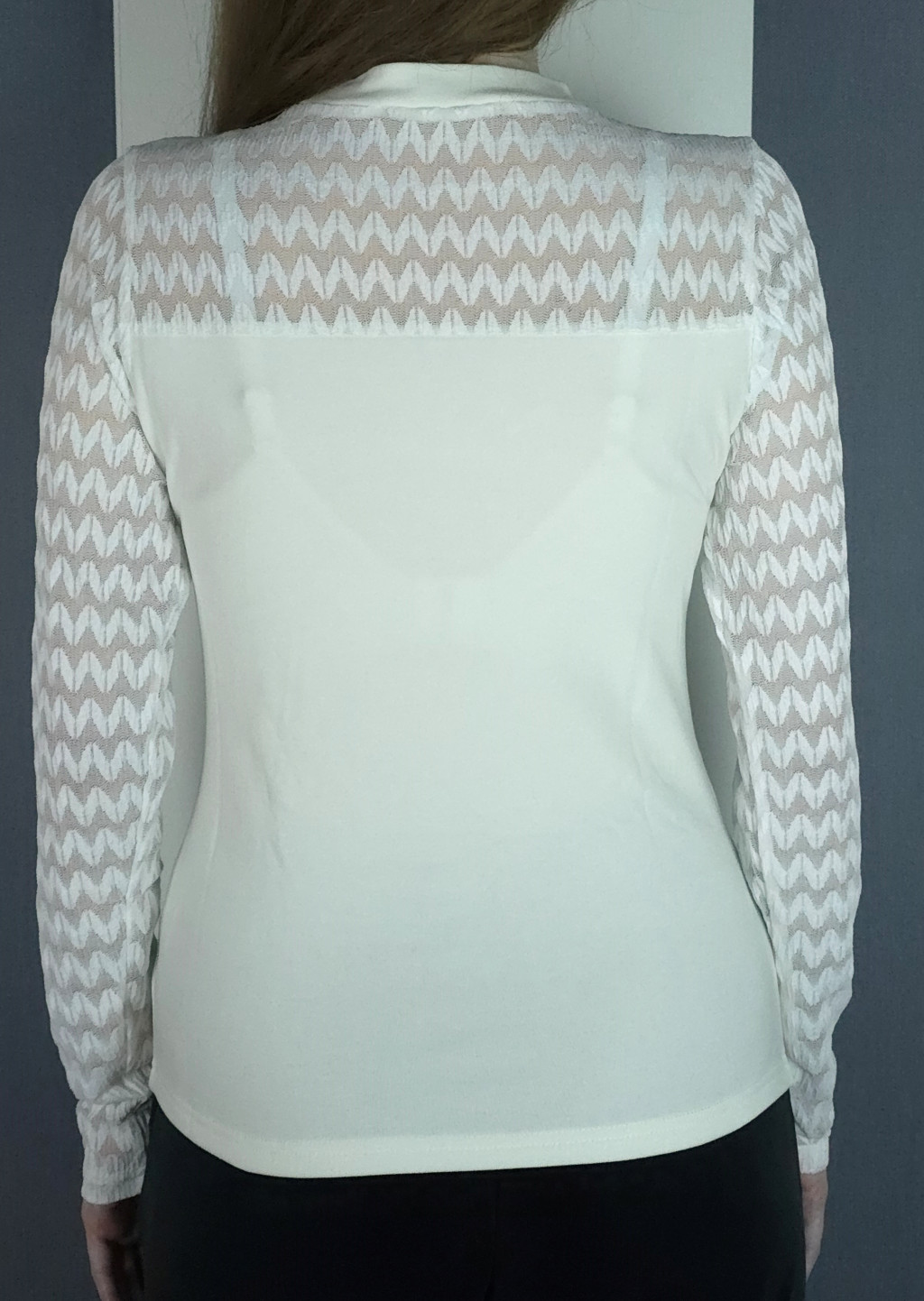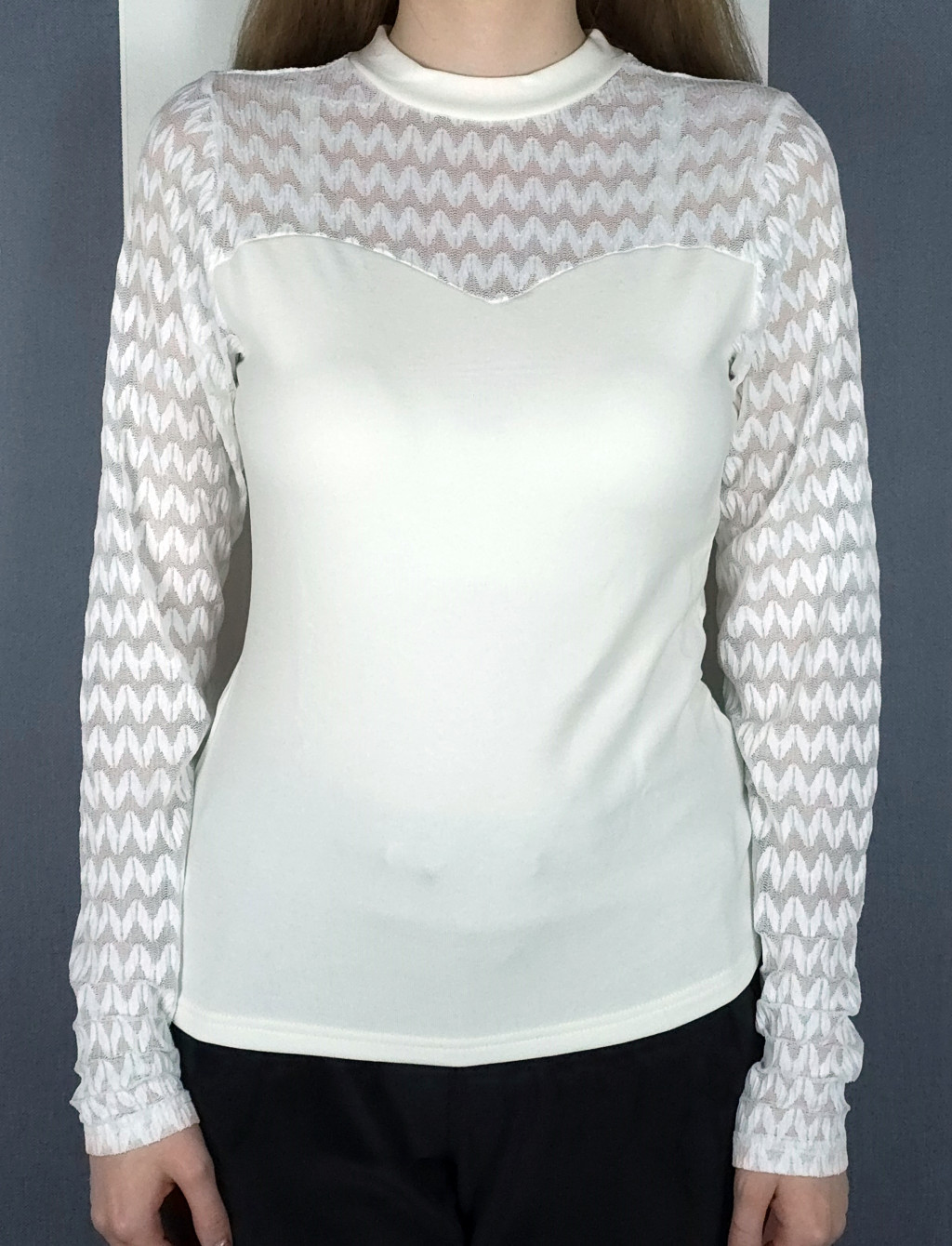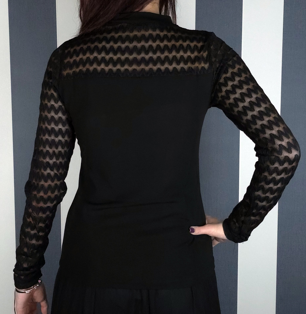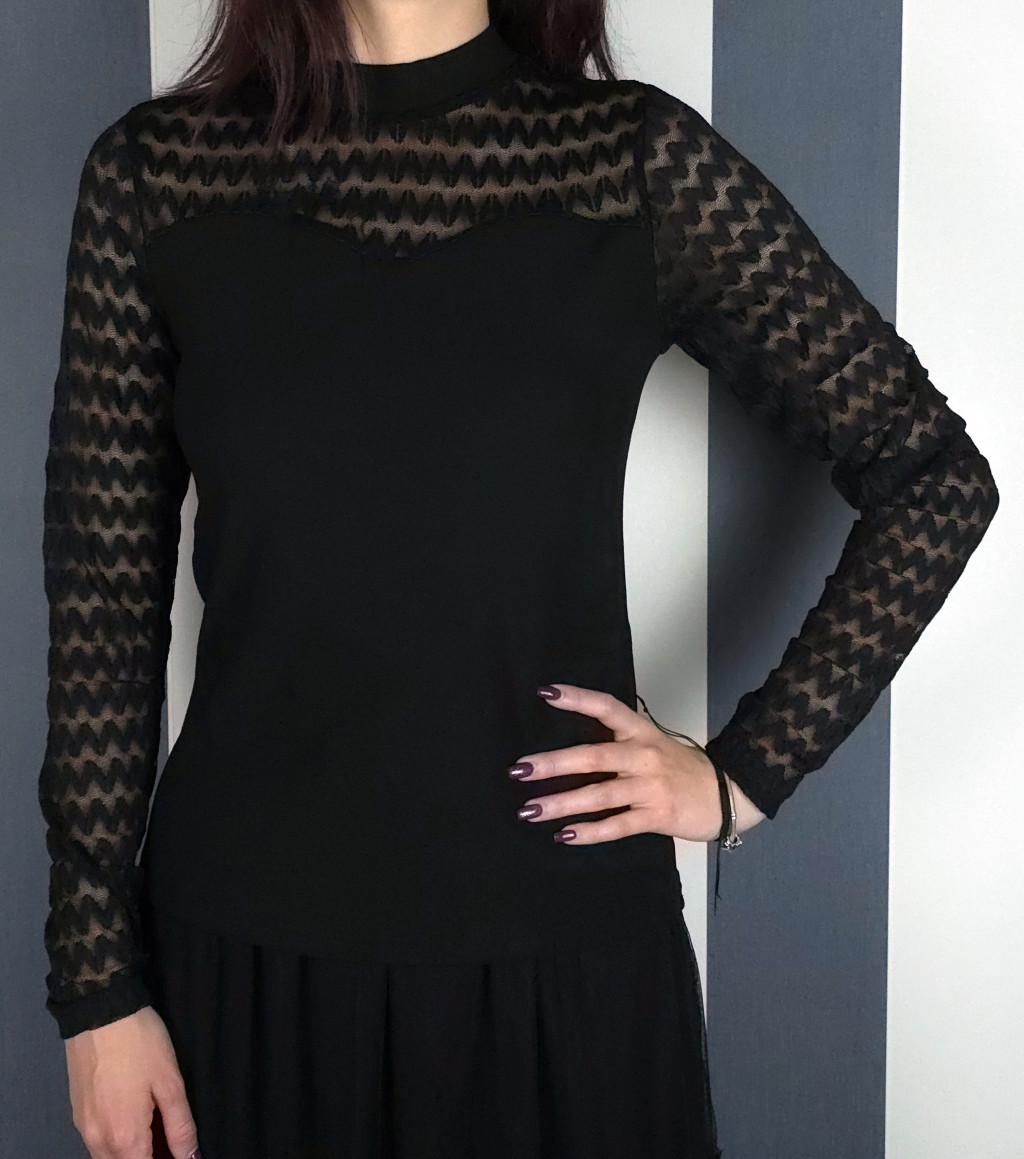 Tüllcsipke ujjú felső (fekete, fehér)
